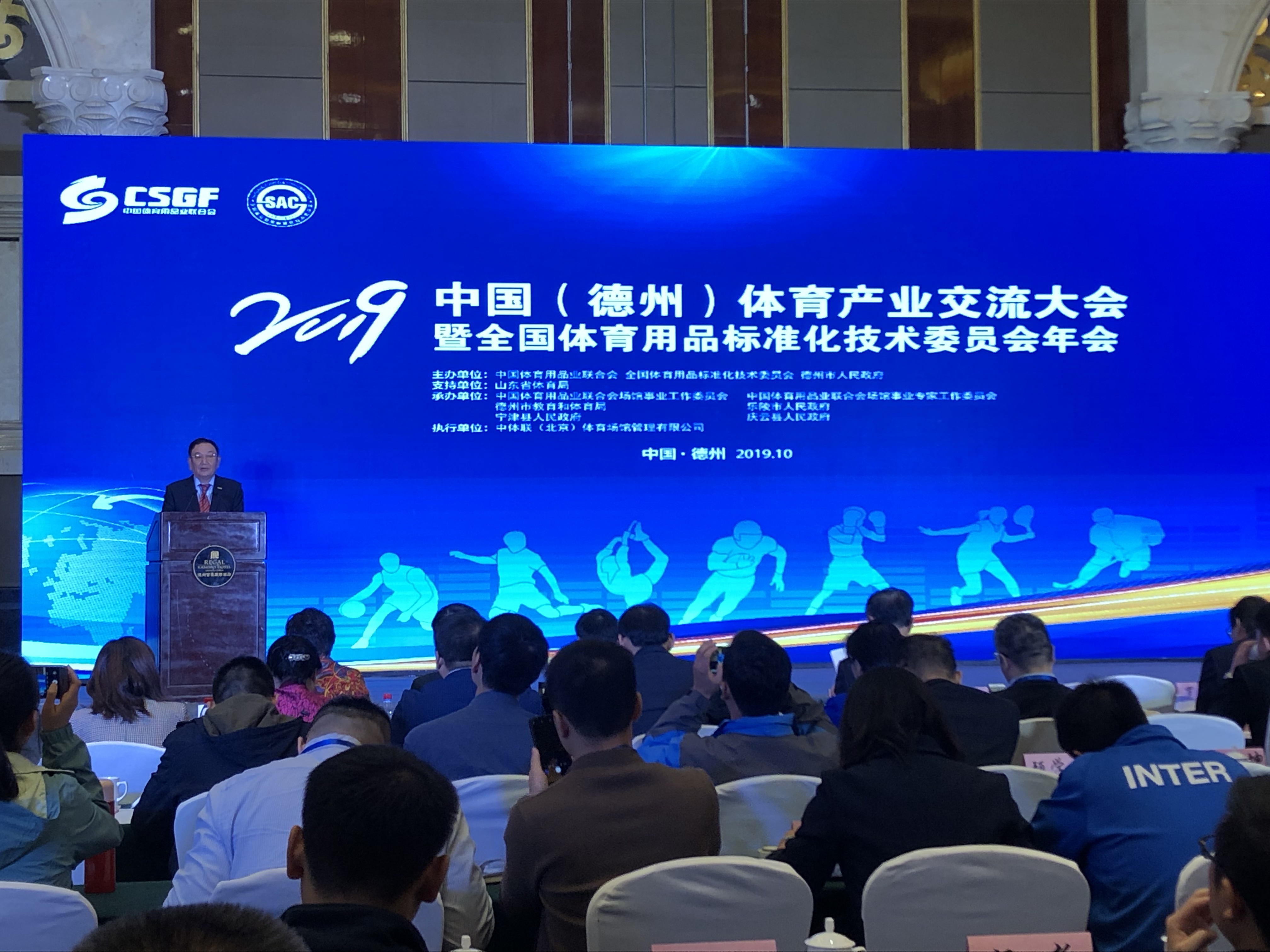 10月13日,2019中国(德州)体育产业交流大会在太阳能德州小镇开幕。大会由中国体育用品业联合会与德州市人民政府联合主办,山东省体育局支持,中国体育用品业联合会场馆事业工作委员会等单位共同承办。大会在 “融入京津冀助力新动能”的大背景下,以“德州智造·标准引领,助力体育产业升级”为主题,旨在充分展示区域体育产业发展成果,促进国际国内体育产业交流,扩大招商引资规模,搭建品牌商、渠道商和消费者展示与互动平台。开幕式上,世界杯下单平台网站官网产业集团荣获“明星企业”称号。
