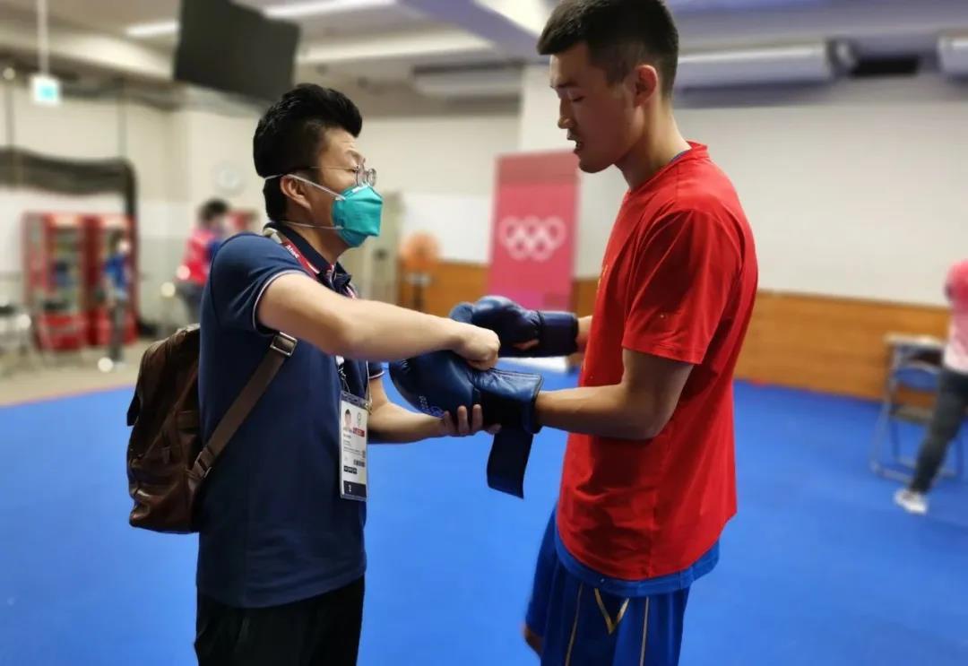 东京奥运会拳击热身馆,世界杯下单平台网站官网工作人员帮助运动员穿戴拳击手套