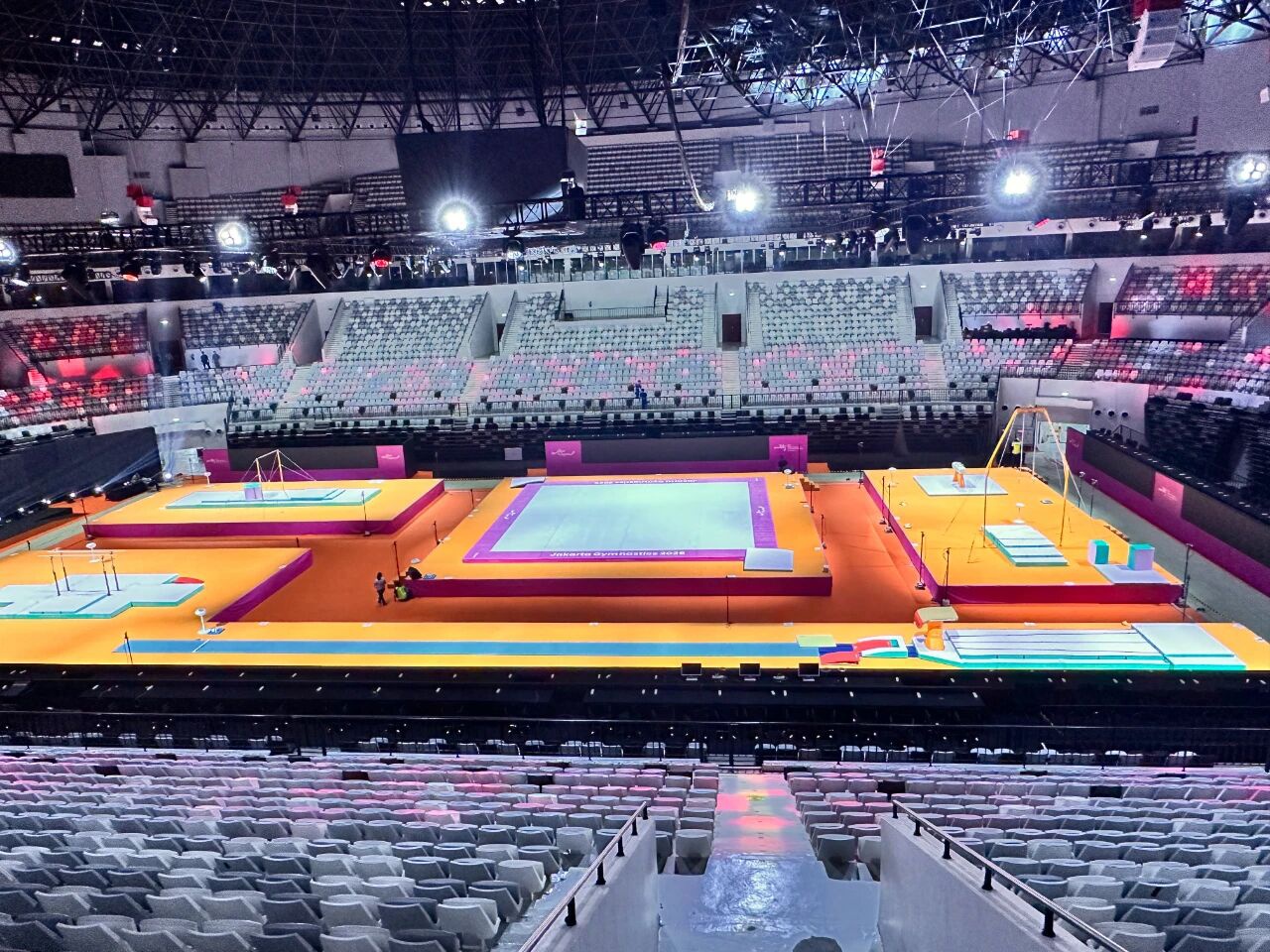 自10月3日筹备工作启动以来,各项工程稳步高效推进。目前,热身馆与比赛场地的铺设作业已全面完成,训练馆安装也进入收尾阶段。场地规划充分考虑了运动员的多样化需求,铺设材料均选用行业顶尖产品,确保性能卓越、安全可靠。由核心技术骨干与资深工程师组成的服务保障团队已全员就位,将24小时全程待命,为赛事顺利举行保驾护航。